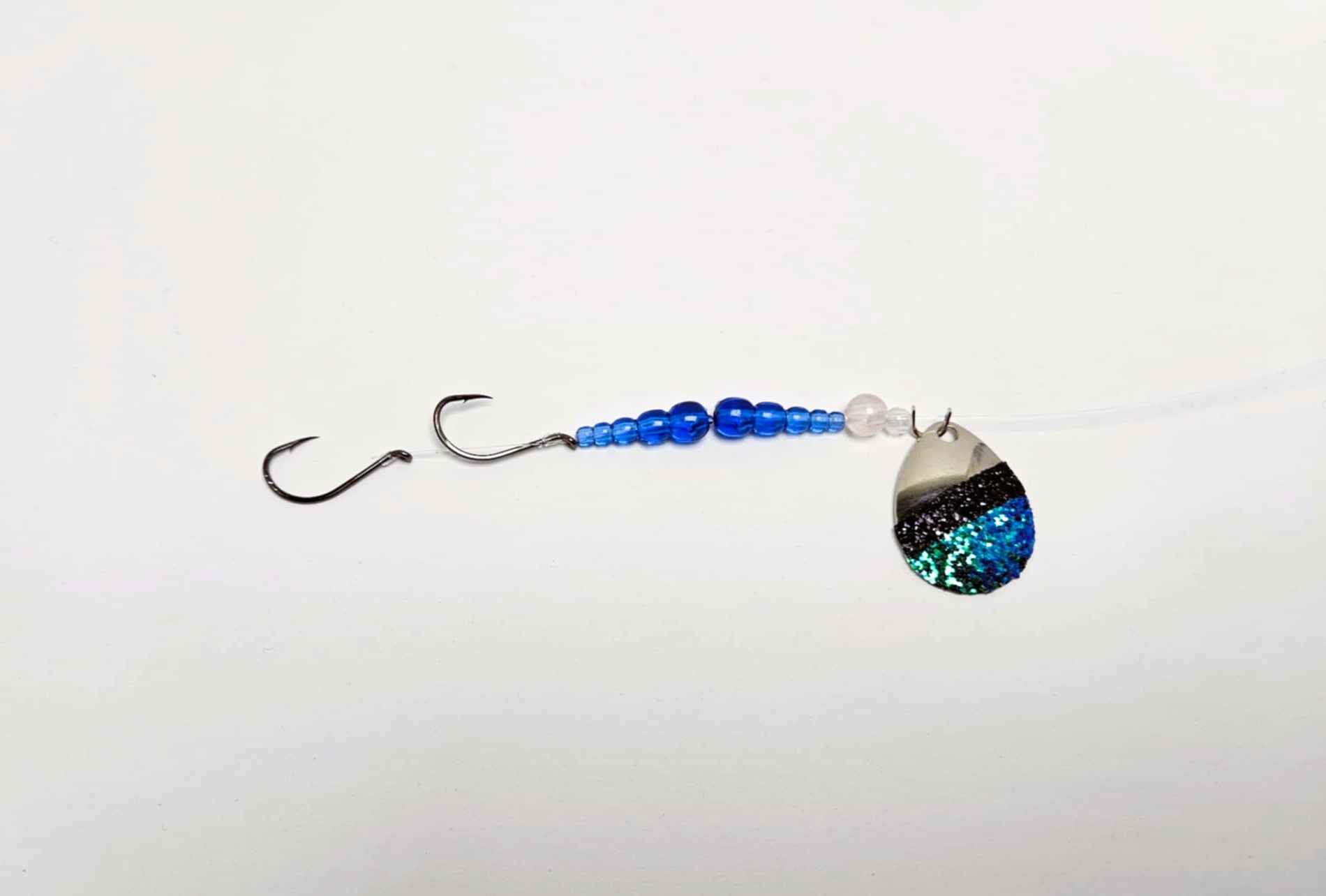 Comes Standard with Hyper Vis + Tape, 8lb P-Line Leader, #4 Mustad Beak Hooks, UV Enhanced stack and single beads, and Glowing/UV Enhanced single beads.