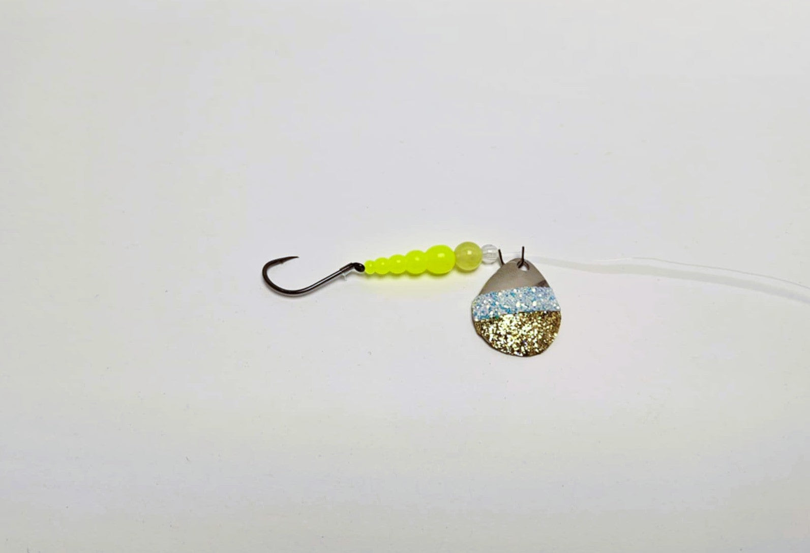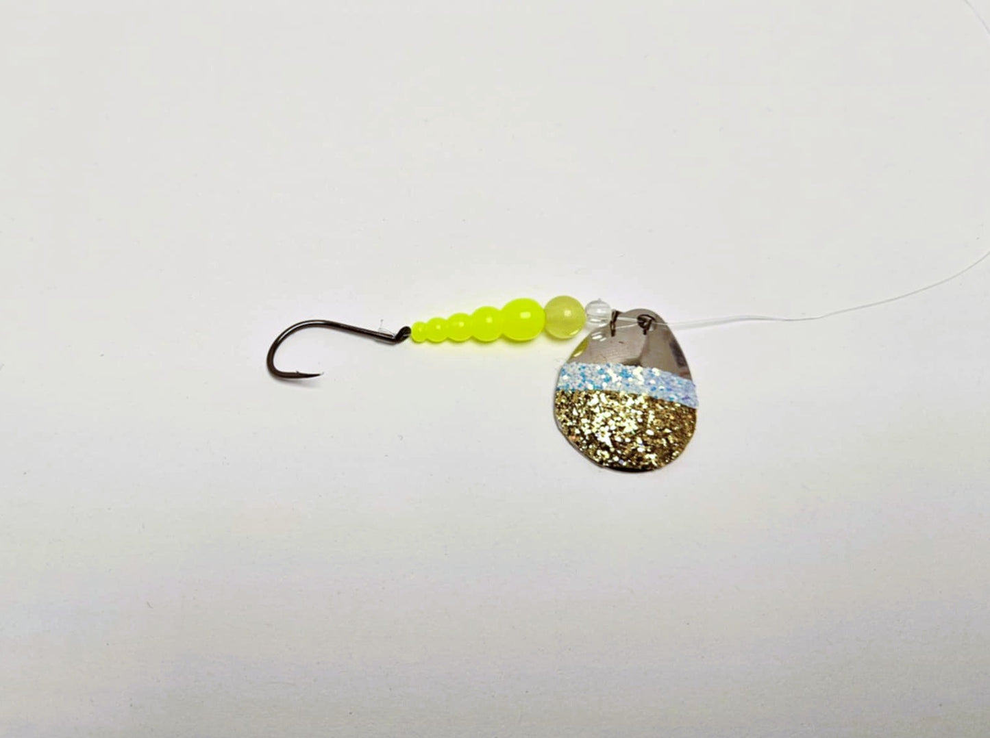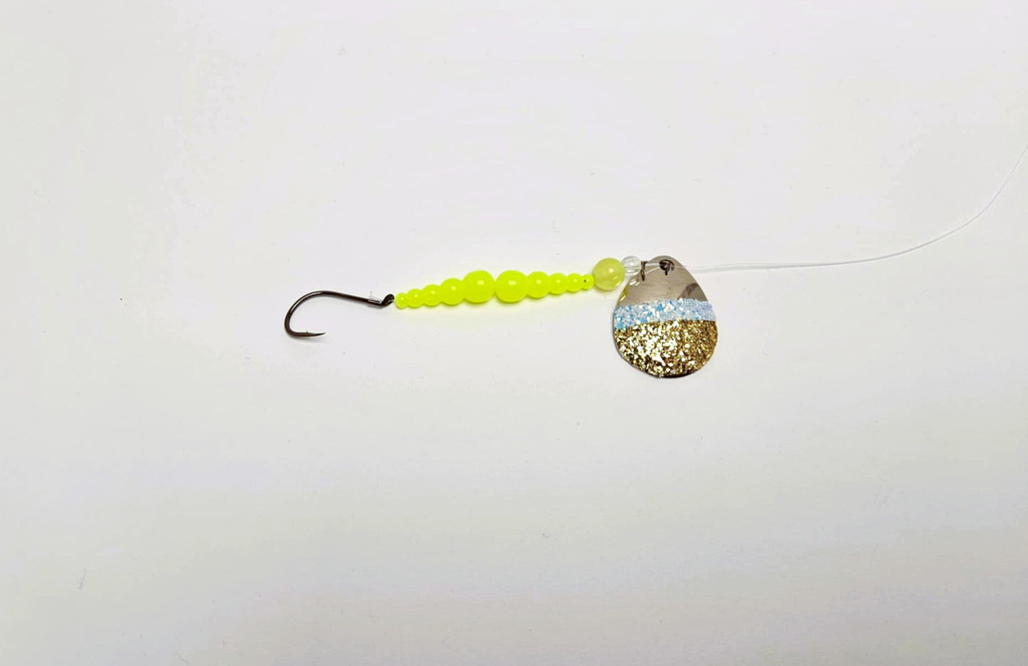 Comes Standard with Hyper Vis + Tape, 8lb P-Line Leader, #4 Mustad Beak Hooks, UV Enhanced stack and single beads, and Glowing/UV Enhanced single beads.